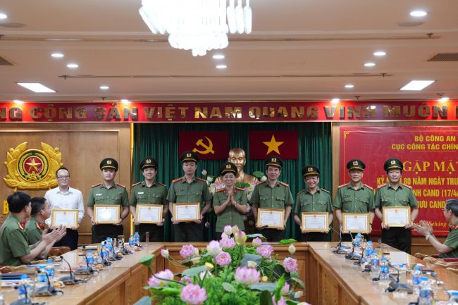 Chiều ngày 16/4, tại Trụ sở Bộ Công an, số 47 Phạm Văn Đồng, phường Phú Diễn, thành phố Hà Nội, Cục Công tác Chính trị đã tổ chức gặp mặt Kỷ niệm 80 năm Ngày truyền thống lực lượng Tham mưu Công an nhân dân (CAND) 18/4/1946 – 18/4/2026; 80 năm Ngày truyền thống lực lượng Tài chính CAND 17/4/1946 – 17/4/2026. Tham dự buổi gặp mặt có đồng chí Đại tá Nguyễn Thị Thúy Thanh, Phó Cục trưởng Cục Công tác Chính trị; các đồng chí trong đảng ủy, lãnh đạo các đơn vị thuộc Cục Công tác chính trị và các cán bộ, chiến sĩ Phòng Tham mưu tổng hợp.