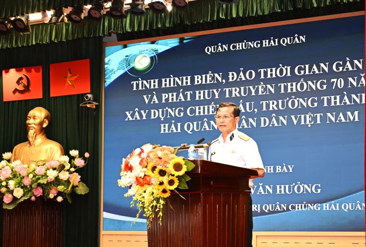 Đại tá Lê Văn Hưởng, Phó Chủ nhiệm Chính trị Hải quân thông tin về chuyên đề: “Tình hình biển, đảo thời gian gần đây; chủ trương, giải pháp của Việt Nam trong thời gian tới”