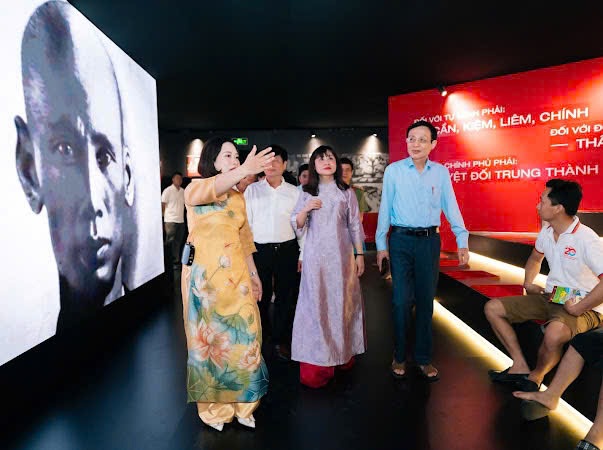 <Đại biểu tham quan gian trưng bày chủ đề Chủ tịch Hồ Chí Minh – Anh hùng giải phóng dân tộc>