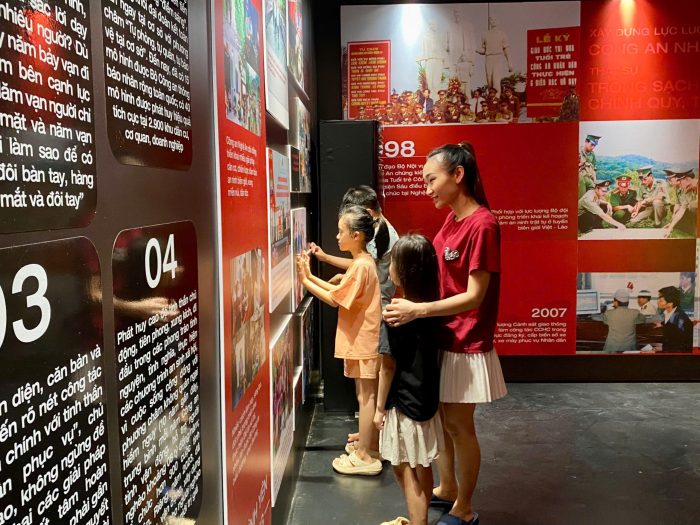 Đặc biệt, với chủ đề “Công an nhân dân khắc ghi lời Bác”, khu trưng bày của Bảo tàng Công an nhân dân được thể hiện sinh động, hấp dẫn, kết hợp hình ảnh, tư liệu, hiện vật với ứng dụng công nghệ phòng trải nghiệm đa giác quan, kết hợp giữa hình ảnh 3D tạo cảm xúc chân thật cho khách thăm quan. Triển lãm giới thiệu những thành tựu, chiến công tiêu biểu của lực lượng Công an nhân dân qua 77 năm học tập, thực hiện Sáu điều Bác Hồ dạy và Lời kêu gọi thi đua ái quốc của Người; tri ân những cống hiến và hy sinh anh dũng, thầm lặng của các thế hệ cán bộ, chiến sĩ Công an trong sự nghiệp đấu tranh giải phóng dân tộc, xây dựng và bảo vệ Tổ quốc. Triển lãm cũng là hoạt động thiết thực nhằm khẳng định giá trị trường tồn của Sáu điều Bác Hồ dạy đối với CAND cùng những huấn thị và di nguyện của Người; thể hiện tình cảm, sự biết ơn của các thế hệ cán bộ, chiến sĩ Công an đối với Bác Hồ kính yêu, cũng như ý chí và quyết tâm của lực lượng Công an nhân dân học tập và làm theo tư tưởng, đạo đức, phong cách Hồ Chí Minh.