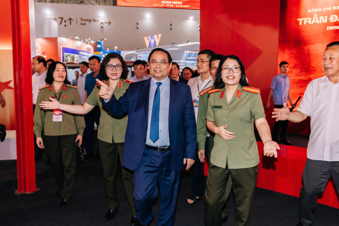 <Thủ tướng Chính phủ Phạm Minh Chính, tham quan khu trưng bày của Bộ Công an>