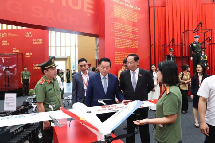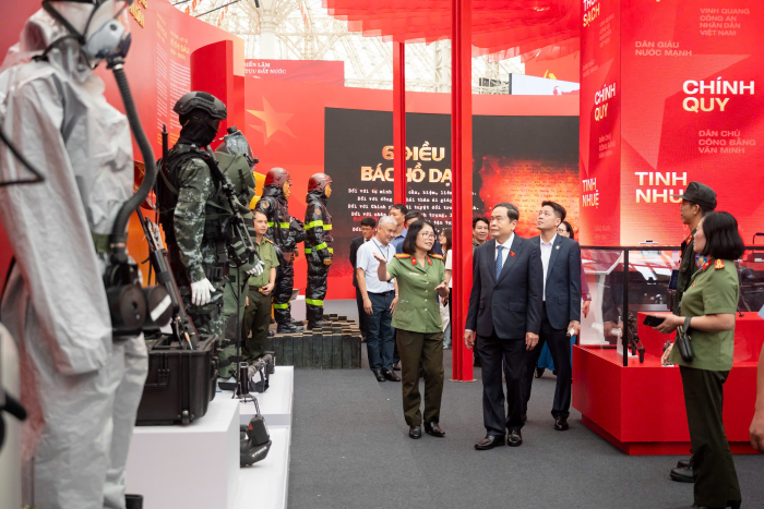 <Chủ tịch Quốc hội Trần Thanh Mẫn tham quan khu trưng bày của Bộ Công an>