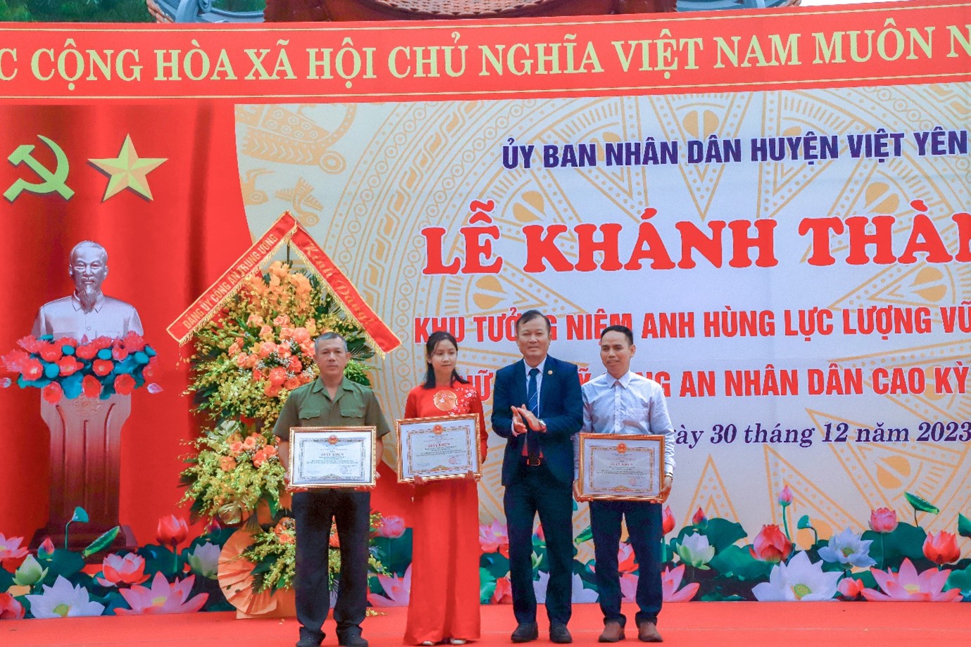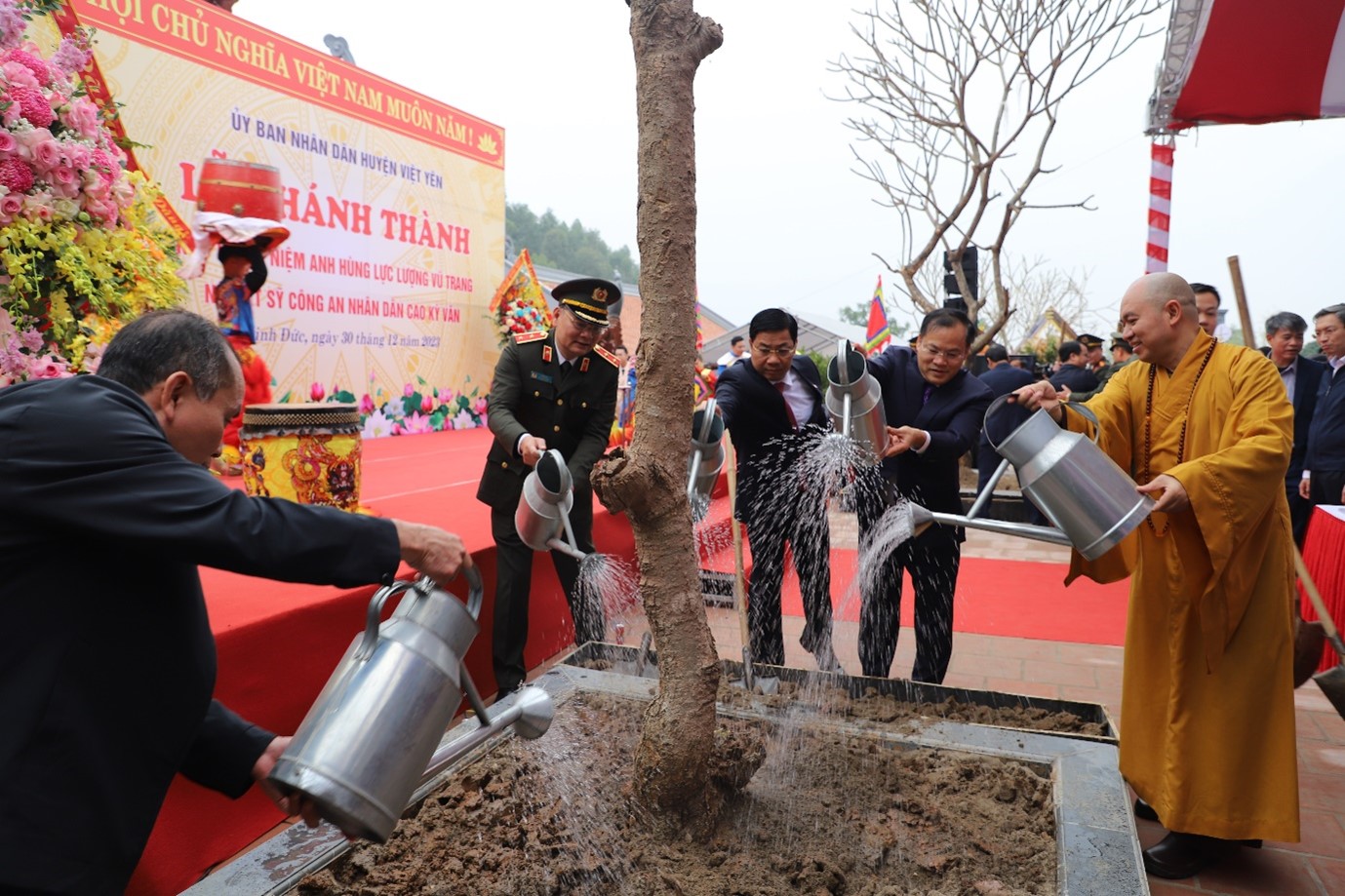 Sáng ngày 30/12/2023, Uỷ ban nhân dân (UBND) huyện Việt Yên, tỉnh Bắc Giang đã tổ chức Lễ khánh thành Khu tưởng niệm Anh hùng lực lượng vũ trang nhân dân Cao Kỳ Vân tại xã Minh Đức, huyện Việt Yên. Tới dự lễ khánh thành, về phía Bộ Công an có đồng chí: Trung tướng Nguyễn Văn Long, Thứ trưởng Bộ Công an; Trung tướng Tô Ân Xô, Trợ lý Bộ trưởng Bộ Công an. Về phía tỉnh Bắc Giang có đồng chí: Dương Văn Thái, Ủy viên Trung ương Đảng, Bí thư Tỉnh ủy; Lê Ánh Dương, Chủ tịch Ủy ban nhân dân (UBND) tỉnh Bắc Giang; Lê Thị Thu Hồng, Phó Bí thư thường trực Tỉnh ủy, Chủ tịch Hội đồng nhân dân (HĐND) tỉnh Bắc Giang; Phan Thế Tuấn, Phó chủ tịch UBND tỉnh Bắc Giang; Ban Giám đốc Công an tỉnh Bắc Giang; đại diện Giáo hội Phật giáo tỉnh; lãnh đạo huyện Việt Yên cùng thân nhân gia đình liệt sỹ và đông đảo nhân dân.