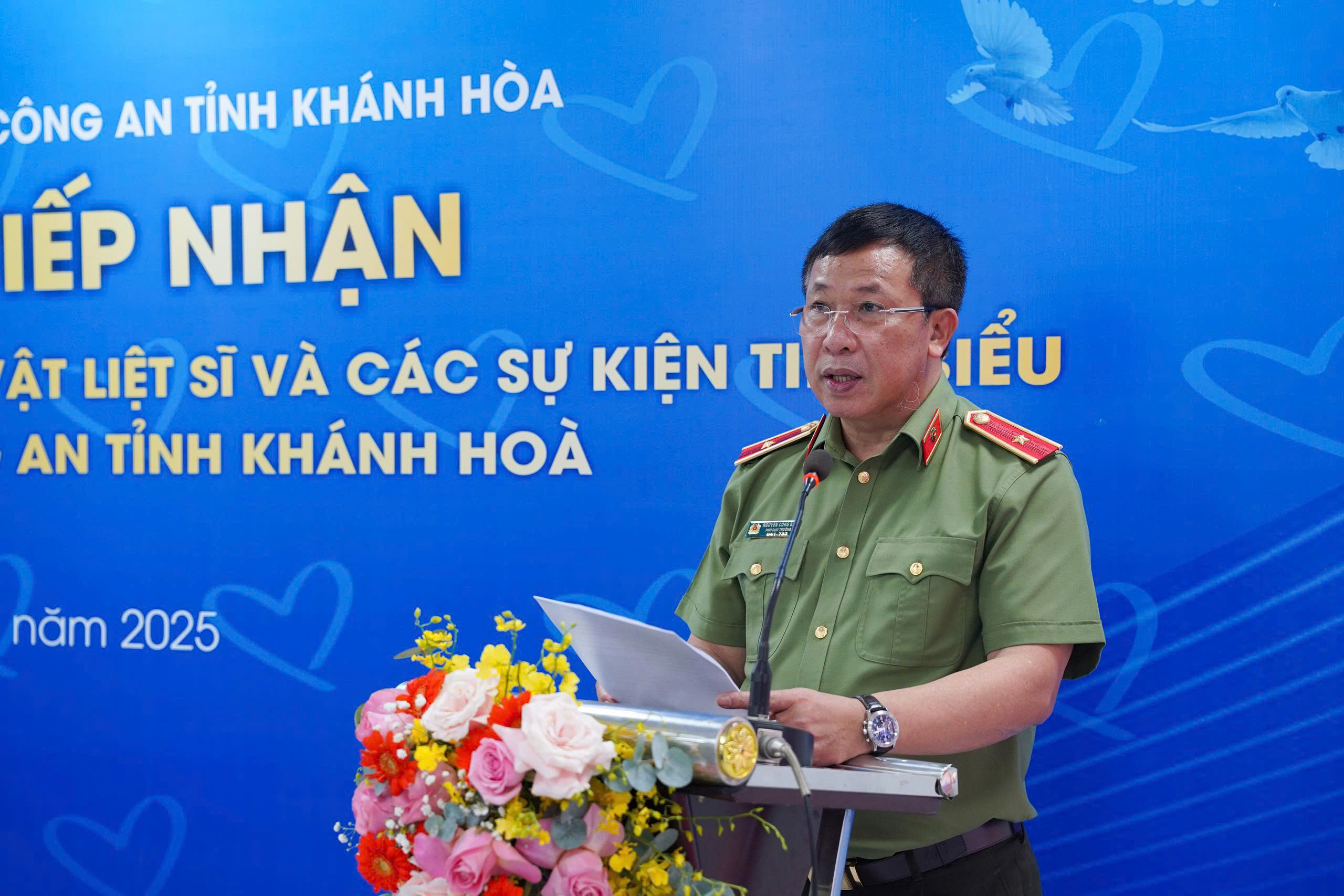 Thiếu tướng Nguyễn Công Bẩy tiếp nhận kỷ vật của Liệt sĩ Hoàng Văn Yên và hiện vật của Công an tỉnh Khánh Hòa