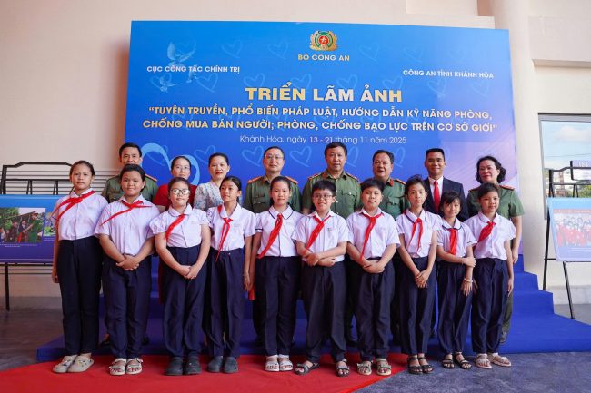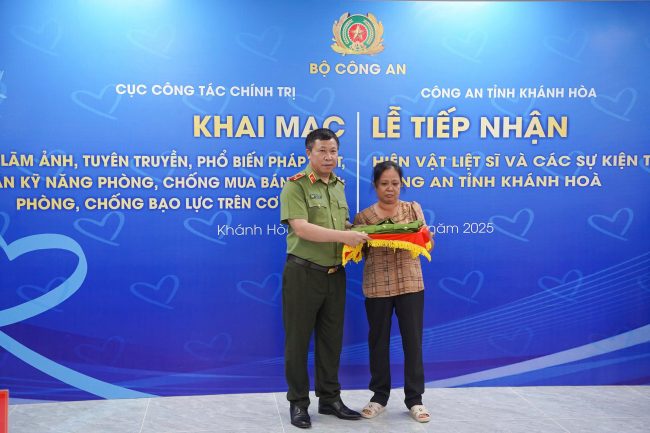 Chiều ngày 13/11, tại Cung Văn hóa Thiếu nhi tỉnh Khánh Hòa, Cục Công tác chính trị, Bộ Công an phối hợp Công an tỉnh Khánh Hòa tổ chức tiếp nhận hiện vật của liệt sĩ và các sự kiện tiêu biểu Công an tỉnh Khánh Hòa; khai mạc triển lãm ảnh “Tuyên truyền, phổ biến pháp luật, hướng dẫn kỹ năng phòng, chống mua bán người; phòng, chống bạo lực trên cơ sở giới”.
