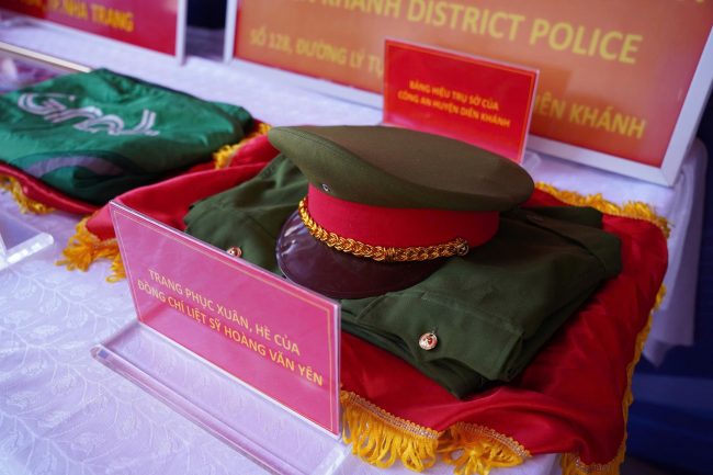 Kỷ vật của Liệt sĩ Hoàng Văn Yên và của Công an tỉnh Khánh hòa trưng bày tại không gian Lễ tiếp nhận