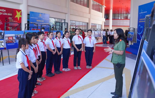 Trong khuôn khổ Triển lãm còn diễn ra các hoạt động tuyên truyền, phổ biến kiến thức pháp luật về phòng, chống mua bán người, bạo lực trên cơ sở giới và các hoạt động trải nghiệm liên quan đến tội phạm mạng, tội phạm công nghệ cao, trong đó có tội phạm mua bán người, như: trải nghiệm nhận diện hành vi lừa đảo bằng thiết bị âm thanh giả định cuộc gọi điện thoại; trả lời câu hỏi về lĩnh vực phòng chống mua bán người, bạo lực giới trên hệ thống màn hình tương tác cảm ứng và nhận diện, phân biệt hành vi chứa nguy cơ bị tội phạm mua bán người tấn công, lợi dụng.
